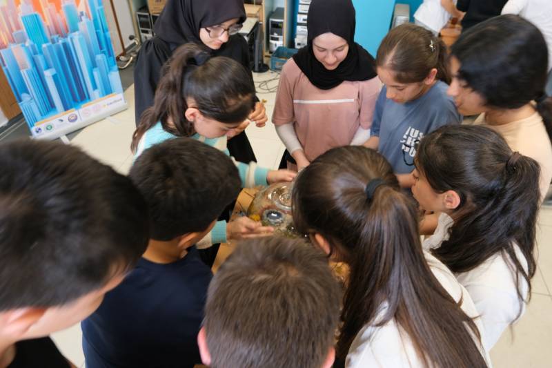 Prof. Dr. Çiğdem Çağlayan delivered an insightful presentation on "Climate Change and its Health Impacts" to a group of middle school students, which included the screening of an educational video on the subject. Following the talk, a dedicated Q&A session allowed students to explore their curiosities further. This was followed by two hands-on applications conducted under the guidance of Prof. Dr. Çağlayan to reinforce the day's themes.